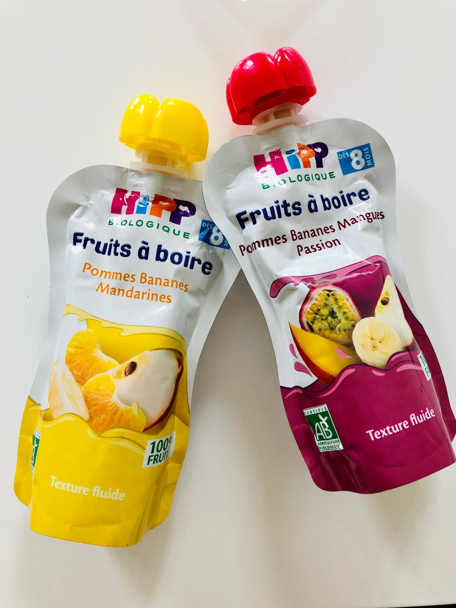 Ces gourdes sont particulièrement pratiques, grâce à leur format et la texture des fruits, ma fille parvient à prendre son fruit à boire seule je ne suis pas obliger d'utiliser une cuillère ce qui est bien pratique.